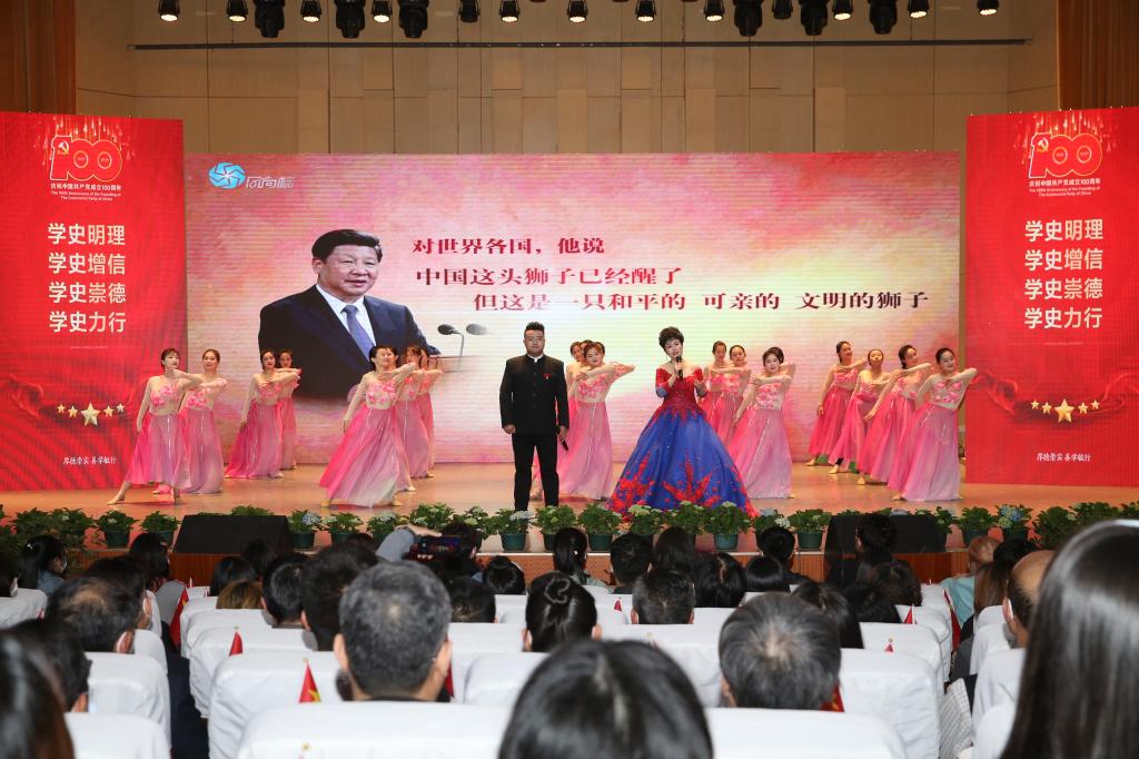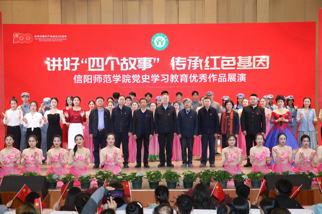 奋斗百年路,启航新征程。3月30日,“讲好‘四个故事’ 传承红色基因”党史学习教育优秀作品展演在艺术楼音乐厅举办。校党委书记王文鹏,校长李俊,校党委副书记郜火星,校党委副书记、工会主席王文臣,副校长刘彦明、陈登报、王金云等领导与500余名师生代表共同观看展演。